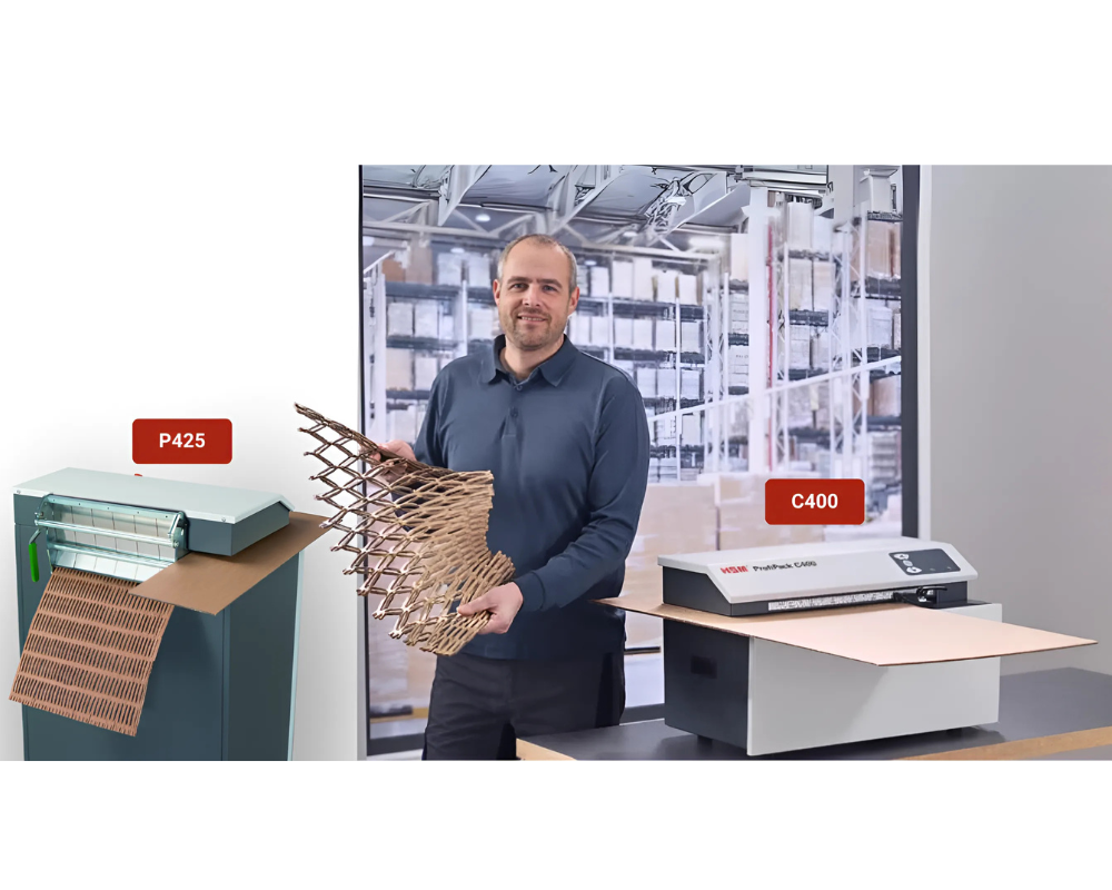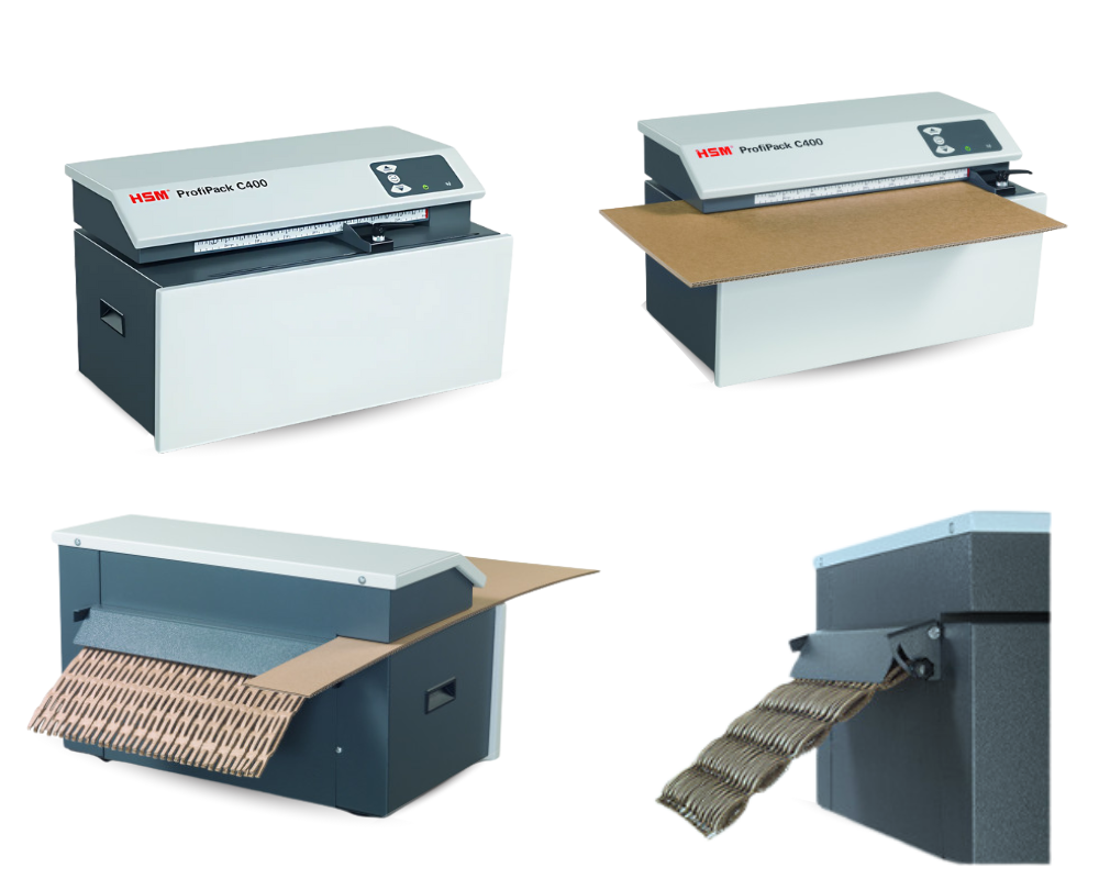 The HSM ProfiPack C400 creates shock-absorbent netting from cardboard sheets, offering a sustainable packing solution. German-engineered for durability, it processes cardboard waste quickly and efficiently. Its integrated turbo function clears blockages, ensuring continuous operation. Compact and reliable, it’s perfect for small businesses and shipping departments.